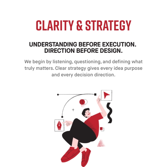 - Clarity is our foundation. We believe strong work begins with understanding, focus, and simplicity. By cutting through noise and assumptions, we create space for ideas that are intentional and well-directed.